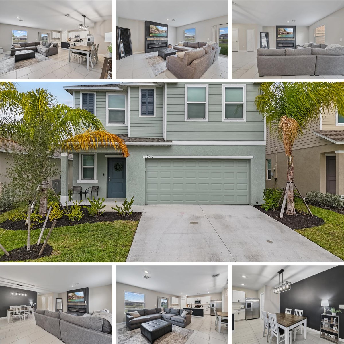 Welcome to this nearly new, two-story residence built in 2025 and located within the desirable Savanna Lakes community. Offering over 2000 sq ft, 5 bedrooms, 2.5 bathrooms, and a spacious loft, this home blends modern design with thoughtful functionality. The main level features tile flooring throughout and is accented by sleek, contemporary finishes. The chef-inspired kitchen is appointed with stainless steel appliances, quartz countertops, a generous center island, white cabinetry, complemented by matching quartz surfaces in the bathrooms. A custom built-in electric fireplace creates a striking focal point in the living area, perfect for both everyday living and entertaining. Situated on a cul-de-sac with serene lake views, the home provides a sense of privacy while maintaining a connection to its surroundings. Residents of Savanna Lakes enjoy access to resort-style amenities including a pool, playground, park, and fitness center. Ideally located near shopping, dining, and the airport, this exceptional property offers both convenience and lifestyle appeal. This property won't last long, schedule your showing today! Seller will assist with buyers closing costs!