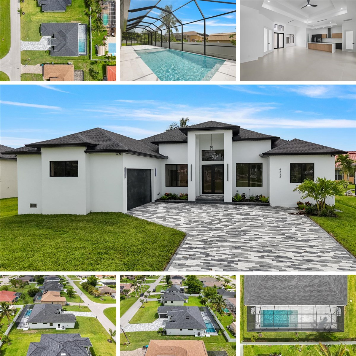 Step into this BEAUTIFUL NEW Construction home. It's the perfect blend of modern design and everyday functionality, offering standout upgrades and a true Florida lifestyle in the heart of SW Cape Coral. Featuring 3 bedrooms + den, 3 full bathrooms, and 2,049 sq ft, this brand NEW HOME delivers high-end finishes throughout—ideal for a primary residence, vacation home, 2nd home, or investment property. Inside, you’ll find soaring 14-foot ceilings, oversized porcelain square tile flooring, and elegant custom lighting fixtures that highlight the home’s open and airy layout. The kitchen is a showstopper, featuring a Large waterfall quartz island with hidden storage underneath, high-end appliances, an induction cooktop, and a multi-function sink with a built-in barista-style glass washer—a perfect combination of beauty and function. Throughout the home, stylish black matte finishes accent the door handles, faucets, and shower heads—adding a sleek, modern touch to every space. The frosted glass interior doors provide privacy and elegance, while the designer-tiled laundry room offers both charm and practicality. Step outside to your personal oasis: a saltwater heated pool with sun shelf and bubbler, surrounded by a natural stone-paved lanai and a fully equipped outdoor kitchen with built-in grill and wine cooler—ideal for entertaining or relaxing under the Florida sun. The spa-inspired primary suite includes a wrap-around walk-in shower, a stand-alone soaking tub, and a stunning 84-inch double vanity with custom mirrors. Completing the home is a 2-car garage with epoxy black floors and an EV charging station, blending style with modern convenience. With all city assessments paid (water and sewer), and just minutes to Cape Harbour, waterfront dining like Rumrunners, High Tide Social House, Fathoms Restaurant, downtown Cape Coral, parks, shopping, schools, and boat ramps—this home is your opportunity to live beautifully in one of Florida’s most desirable coastal cities. THIS HOME IS A MUST SEE TO VALUE ALL THE UPGRADES IN THE HOME! Schedule your private showing today!